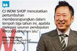 Kim yang hyun, ceo of mp cj enm sdn bhd, said, our mandarin shows have been contributing significantly to cj wow shop's overall business, as evident from the growing number of transactions and customers from the chinese audience.