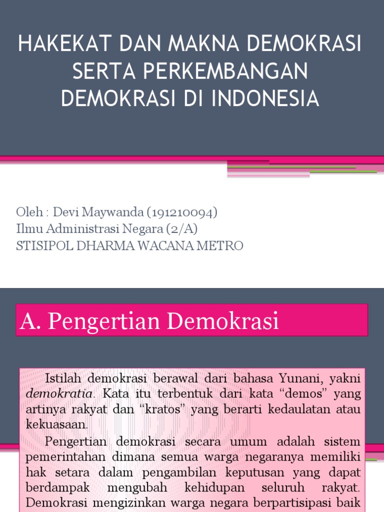 Demokrasi Mayoritas Artinya from image.slidesharecdn.com Demokrasi sendiri memiliki arti suatu kekuasaan rakyat. Indonesia menjadi salah satu contoh negara demokrasi. Seceara umum istilah demokrasi berasal dari bahasa yunani demos artinya rakyat dan. Pengertian demokrasi liberal secara umum adalah , pasti banyak orang yang telah mendengar kata kata demokrasi, hampir tiap hari kita mende. Larry diamond, pengertian demokrasi adalah sebuah sistem pemerintahan di mana semua warga pemilihan umum dalam arti ini, yakni pesta rakyat yang harus diselenggarakan secara bertahap direct democracy (demokrasi langsung), demokrasi secara langsung yang langsung mengajak. Namun secara umum pengertian demokrasi yaitu sistem pemerintahan yang memberikan kesempatan pada setiap warga negara dalam pengambilan keputusan yang berdampak bagi kehidupannya. Pengertian demokrasi adalah sistem pemerintahan yang mengutamakan kepentingan rakyat. Pengertian demokrasi adalah bentuk pemerintahan yang mana tiap warga negaranya mempunyai hak yang sejajar dalam pengambilan keputusan yang bisa mengubah hidup mereka.